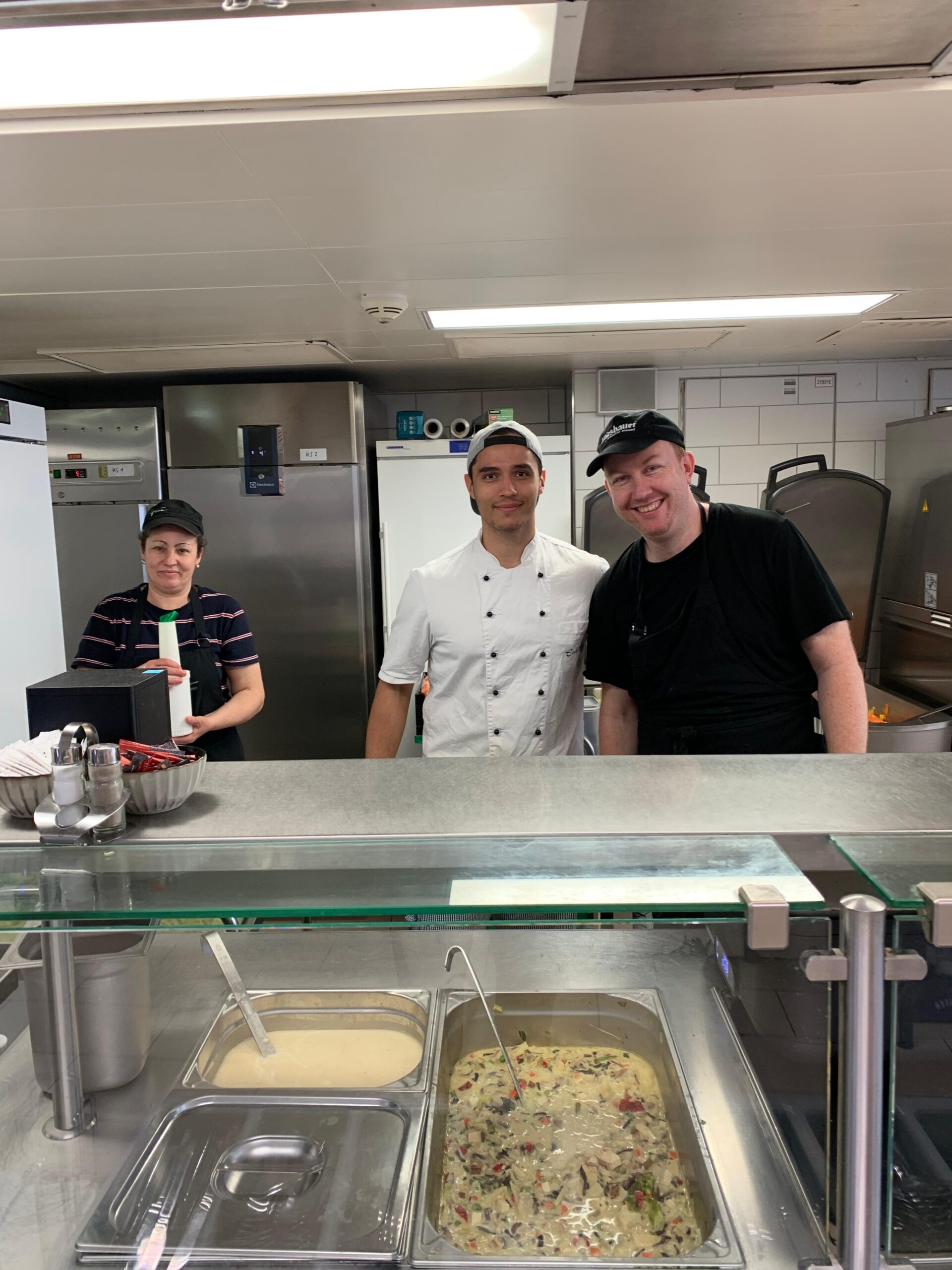 Foto von Denny und dem Koch mit Blick in die Kamera